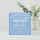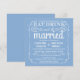 Coma, beba, e é casado -- Convites rústicos elegantes do casamento do país do estilo -- Swirly, rolos encaracolado e tipografia do vintage da velho-forma na rotulação branca no fundo pastel do azul de pó da pervinca. Adicione os nomes dos noivos e a informação wedding neste modelo fácil de usar. O rico, o divertimento e a caligrafia escrita à mão lunática, retro do estilo do giz podem ser alterados para seu tema formal ou semi-formal do casamento. O estilo moderno ocasional mas elegante é perfeito para casamentos contemporâneos na moda com um toque do encanto sofisticado romântico para casais tradicionais. Aperfeiçoe para o primavera, o verão ou os casamentos outono. Contacte-nos por favor para a ajuda com personalização se você precisa a sala adicional para seus detalhes do casamento. NOTA: Mostrado em cartões padrão do convite do tamanho A7. Outros tamanhos e estilos disponíveis, junto com selos postais de harmonização, artigos de papelaria nupciais de coordenação, acessórios wedding do pacote e favores do chá.
