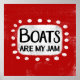 "Boats Are My Jam" é um design de texto divertido com forma de sotaque branca cercado por pontos brancos texturizados.