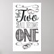 Elegante, ornamentado, design de tipografia caligráfica em letras negras elegantes com ricos, glifos e alternativos, letras desenhadas à mão e rochas ornamentais, diz: "Os dois se tornarão um." Escritura é de Matthew 19.6.