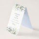 Este design apresenta flores azuis empoeiradas e folhas de eucalipto em tons de verde.