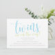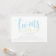 "Gêmeos" em azul, "estão a caminho" em verde. Os detalhes do chá de fraldas são exibidos abaixo.