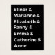 Elinor, Marianne, Elizabeth, Fanny, Emma e Catherine e Anne.