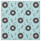 Os KRW iluminam - o tecido retro azul da música dos registros. Design do divertimento com registros e notas da música em uma luz - fundo azul