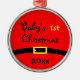 Os primeiros enfeites de natal do bebê com ano. Caracterizando um fundo do terno do papai noel. Faz uma lembrança maravilhosa para os pais novos. Apenas adicione o ano da criança de nascimento.