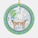 Os primeiros enfeites de natal do bebê caracterizam o coelho pequeno o mais doce em uma ucha. A parte traseira do ornamento está pronta para que você adicione a informação do nascimento do seu bebê. Personalize com sua informação do bebê e data e você são todos ajustam-se para ir! Presente datado maravilhoso da lembrança para Natal do seu bebê o ø.