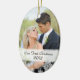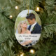 Os primeiros enfeites de natal do casal bonito, simples com foto. Para newlyweds e pais recentemente de casais como uma lembrança de seu dia do casamento. Os flocos de neve brancos e e a banda opaca junto com sua foto do casamento compo este design à moda