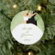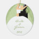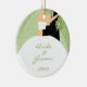 O ornamento dos noivos com os nomes e o casamento datam, em um fundo do redemoinho do verde do margarita. Aperfeiçoe para seu primeiro Natal como um casal! Grandes presentes para newlyweds!