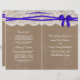 A coleção de casamento do arco azul rústico é um design impressionante que apresenta um adorável fundo de efeito de burvolta rústica com um romântico efeito de renda branca vintage e um espantoso arco azul. Esses programas podem ser personalizados para sua ocasião especial e fariam a modelo perfeita para casamentos, chás de panela, festas de noivado, festas de aniversário e muito, muito mais. *Observe que o Zazzle só vende produtos impressos para que este item não tenha nenhum material real de burlap, rendas ou fita/ arco.
