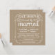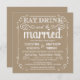 Coma, beba, e é casado -- Convites rústicos elegantes do casamento do país do estilo -- Swirly, rolos encaracolado e tipografia do vintage da velho-forma na rotulação branca no fundo do bege do Sandy Beach. Adicione os nomes dos noivos e a informação wedding neste modelo fácil de usar. O rico, o divertimento e a caligrafia escrita à mão lunática, retro do estilo do giz podem ser alterados para seu tema formal ou semi-formal do casamento. O estilo moderno ocasional mas elegante é perfeito para casamentos contemporâneos na moda com um toque do encanto sofisticado romântico para casais tradicionais. Aperfeiçoe para o primavera, o verão ou os casamentos outono. Contacte-nos por favor para a ajuda com personalização se você precisa a sala adicional para seus detalhes do casamento. NOTA: Mostrado em cartões padrão do convite do tamanho A7. Outros tamanhos e estilos disponíveis, junto com selos postais de harmonização, artigos de papelaria nupciais de coordenação, acessórios wedding do pacote e favores do chá.