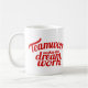 A equipe que vermelha do slogan do texto a caneca lê trabalhos em equipe faz o trabalho ideal. Grande escritório, agradeça a lhe ou ao presente inspirador. Projetado por www.mylittleeden.com no zazzle