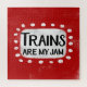 "Trains Are My Jam" é um design de texto divertido com uma forma de sotaque branca cercado por pontos brancos texturizados.