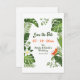 Umas economias bonitas o anúncio da data com folha e as flores tropicais. (<a href='http://www.freepik.com/free-vector/save-the-date-card-background_1083171.htm'>Projetado por Freepik</a>). <br/><br/>O cartão é fácil de personalizar com seus fraseio, opções da pia batismal, do cor da pia batismal, as de papel da forma e escolha de seis tipos de papel<br/><br/>Não exatamente que você está procurando? Todos nossos produtos podem ser projetados para encontrar suas necessidades em nenhuma sobretaxa<br/><br/>Contacte-nos simplesmente em askcottonlamb@gmail.com. <br/><br/>Produtos de coordenação disponíveis: Apenas pergunte-nos!