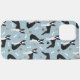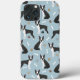 Cães bonitos de Boston Terrier com casacos pretas e brancas sentam-se e ficam espalhados por ossos de cachorro e padrões de pata.