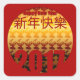 Círculo de ouro com incrustação de galos atrás de um quadro vermelho com a inscrição "recortada" (Feliz ano novo em chinês e inglês + 2017) na mesma cor e sombra suave. Adesivo quadrado personalizável para o Ano Novo Chinês 2017. Produtos correspondentes: cartão de saudação, cartão postal, cartão com fotos, envelopes vermelhos... — "O galo (chinês simplificado: 鸡; chinês tradicional: 雞/鷄) é um dos ciclos de 12 anos de animais que aparecem no zodíaco chinês relacionado ao calendário chinês. O ano do galo é representado pelo 酉 de ramificação terrestre. O nome também é traduzido para o inglês como Frango. Rooster é o único pássaro incluído no zodíaco chinês. wikipedia.