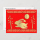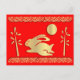 Um belo cartão-postal vermelho e dourado para o novo ano chinês atual. Um coelho saltando com lua e plantas em ouro. Mande para amigos, família ou qualquer um.