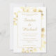 Convites de casamento brancos elegantes com folhas de bege ouro para um casamento chique e clássico.