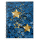 O caderno espiral bonito para a escola ou para usar-se como um Diário, caracterizando o ouro & as estrelas azuis do brilho projetam
