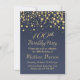 Ouro redondo confetti em uma cinza azul 100º Convite de aniversário