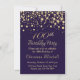 confetti redondo de ouro sobre fundo violeta 100º Convite de aniversário