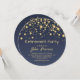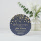 Ouro round confetti em um Convite de festas de baixa de fundo com gradiente de cinza azul