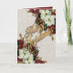 O ouro elegante de Natal e o vitoriano vermelho parecem um cartão personalizado. Flores de Natal em linho olham fundo com texto dourado 3D, "Feliz Natal", de Irisangel