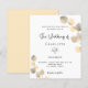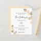 Um fundo branco decorado com ouros de eucalipto. Personalize e seu nome e detalhes da cerimônia. Letras pretas coloridas. Fundo do ouro