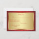 Flores decorativas de ouro no cartão de resposta de convite de fundo vermelho damask. Você pode ajustar o texto de acordo com seus requisitos: alterar a fonte, a cor, o tamanho ou colocar sua própria mensagem.