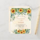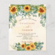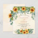 Um fundo branco e ouro de cor aquosa decorado com girassóis, eucalipto verde. Personalize e adicione seus nomes e detalhes da festa.