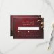 RSVP em estilo com esta placa de resposta de Bola de Mascarada. O design luxuoso apresenta um fundo vermelho intricadamente texturizado, enfeitado com falso efeito de falso ouro 3D, criando um espantoso Mardi Gras e o tema do casamento de fantasia.