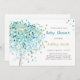 O ♥ A bonito e chá de fraldas do divertimento convida para um rapaz pequeno em sua maneira! Árvore dos confetes com marinho e ouro azuis.