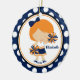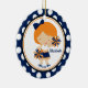 O grupo azul & alaranjado bonito datado dos enfeites de natal da menina dos aplausos do cheerleader em uma polca azul e branca pontilhou o fundo. Um presente do Natal da maravilha sure a ser estimado por muitos próximos anos.
