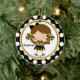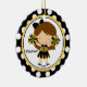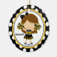 O grupo preto & amarelo bonito datado dos enfeites de natal da menina dos aplausos do cheerleader em uma polca preta & branca pontilhou o fundo. Um presente do Natal da maravilha sure a ser estimado por muitos próximos anos.