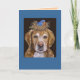 Retriever de ouro com um chapéu bluebird na placa para você personalizar sem custo extra