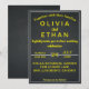 Esta elegante caligrafia negra e dourada, tudo num convite de casamento, é perfeita para um casamento moderno. A design romântica minimalista apresenta uma magnífica e elegante tipografia negra e dourada em um fundo rústico e chico.