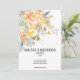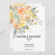 Um convite de casamento elegante de ouro amarelo e cor de pêssego, com um buquê floral de cor d'água com sua sombra suavemente derramando no convite e cinzas e elementos cintilantes de prata cintilante, com seus primeiros nomes em uma fonte moderna com uma data numérica de casamento por baixo e uma pequena fonte para os detalhes. Este luxo sofisticado convite para casamento de ouro amarelo e pêssego é adequado para qualquer ocasião, basta personalizar o texto. Precisa de ajuda? Mande-me um bate-papo.