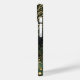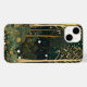 Uma cena florestal fantástica e encantadora com uma paleta verde e dourada. Árvores altas e estilizadas com troncos e galhos ouros chegam em direção a um céu escuro, seus membros adornados com frutas esféricas ou brilhantes. O primeiro plano é uma tapeçaria densa de folhagem detalhada, recheada de flores estilizadas e plantas em tons de verde, creme e ouro em xisto. As órbitas luminosas flutuam pelo ar e descansam no chão, criando uma atmosfera mágica que lembra uma floresta sonhadora. A composição global é altamente decorativa, com uma perspectiva plana e padrões complexos que enchem a canvas.