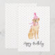 Ouro de Aquarela Labrador Cachorro Arte no Chapéu de Aniversário, Fita em Rosa em Maçãs brancas, mini balões em fundo com FELIZ ANIVERSÁRIO personalizado em cinzas. Fácil de personalizar texto, cor de texto. Excelente para QUALQUER comemoração de aniversário, Fanfarrão de Cachorro, Laboratório de Ouros, Parto de Aniversário, Mãe de Cachorro / Aniversário do Pai. Festivo, Doce, Divertido. Misturar e combinar coleções inteiras de Quebra de presente/Pistas de Cachorros por TMCdesigns.