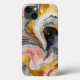 Um impressão de abstrato luxuoso com cor-de-rosa pincelado, cinzas e espirais de mármore preto acentuado com detalhes de ouro que brilham. O design fluido cria uma elegante e moderna estética perfeita para qualquer espaço. Ideal para adicionar um toque de sofisticação e glamour a sua casa ou escritório.