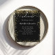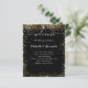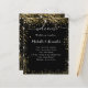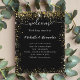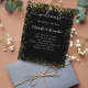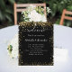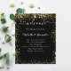 Um fundo preto moderno, decorado com faíscas douradas. Personalize e adicione seus nomes e sua linha do dia do casamento. Texto branco. Se você tiver mais texto, é possível reduzir o espaço na linha. Você também pode adicionar texto no verso. 1 folha = 1 programa impresso borda a borda.