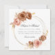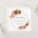 Convite de casamento elegante, com tema de champanhe, com rosas cor-de-chocolate marrom e rosa-pincelado dispostas em uma coroa moderna. Acentuado com folhas de imitação em relevo dourado, folhagem e espuma. Por favor, note que os detalhes de ouro neste convite de casamento são uma imitação de ouro gravado.