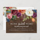 Cartões-postais de anúncio de mudança impressos personalizados acessíveis com o novo endereço e informações de contato da sua família. Este design moderno apresenta uma borda floral em aquarela boho em cores quentes de outono rústico em um fundo de madeira falsa. Use as ferramentas de design para personalizar o texto, editar as fontes e cores ou adicionar suas próprias fotos para criar um cartão-postal de novo endereço único para sua família ou empresa.