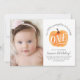Um convite de aniversário elegante, que mostra sua foto com um tema de outono e abóbora pintada manualmente. Lê "Nossa Pequena Abóbora está virando uma"