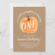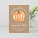 Um belo convite de aniversário com tema de outono e com a nossa abóbora pintada à mão. Lê "Nossa Pequena Abóbora está virando uma"