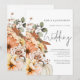 Outono Floral Abóbora Script Código QR Casamento. Adicione o seu código QR ao site do seu casamento no verso, o que torna esta uma opção conveniente para os seus convidados responderem e verem todos os detalhes sem a necessidade de cartões separados de RSVP e detalhes. O seu código QR será gerado automaticamente quando você substituir a URL de exemplo pela sua própria. Um conjunto de script manuscrito para Casamento e o resto do texto que você pode facilmente personalizar. Flores de outono coloridas e abóbora descem pelo lado esquerdo e atravessam a parte inferior e também estão no verso,