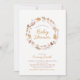 Neste outono, a design de convite para chá de fraldas de foliar apresenta uma coroa de outono moderna com folhas, flores e aves. Mais itens correspondentes disponíveis no meu compro BaraBomDesign.