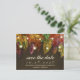 Rustic Fall Autumn Leaves Cartões salve a data - apresenta um fundo vintage castanho angustiado com folhas de queda e luzes de cordas com textos decorativos. Ver a coleção de design correspondente nesta página.