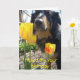 Um cartão de aniversário bonito com um casal de fotos de cães e flores, e um dentro de histórias engraçadas.