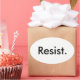 Adesivo oval brilhante, letras negras em branco: "Resistência".