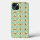 Esta capa de telefone tem um moderno século médio de ovais cremosos e estrelas pretas num campo de verde-marinho.