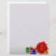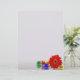 Ilustração de felz pascoa com folha colorida embrulhada em chocolate Ovos de Páscoa e uma flor vermelha de gerbera em fundo branco-claro.
